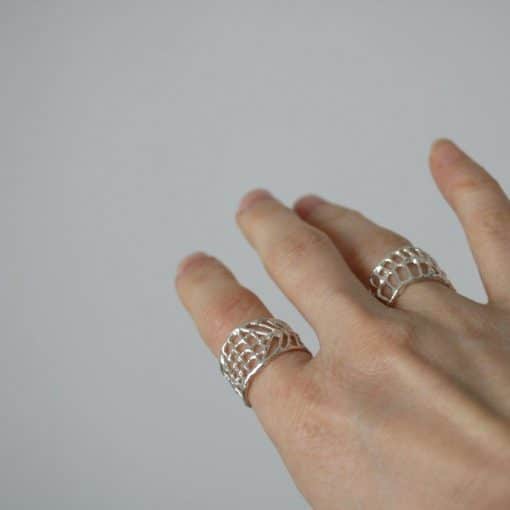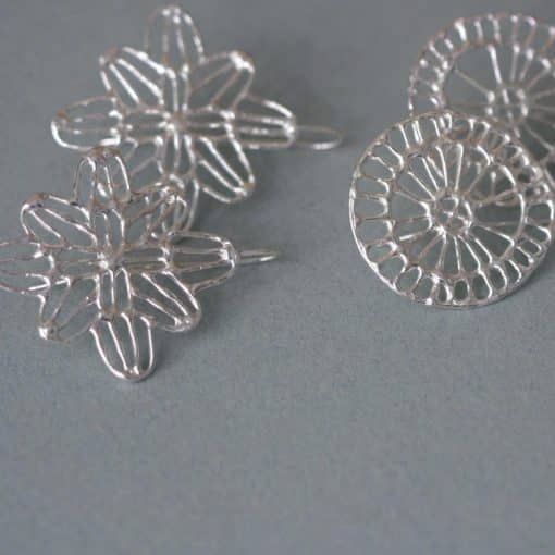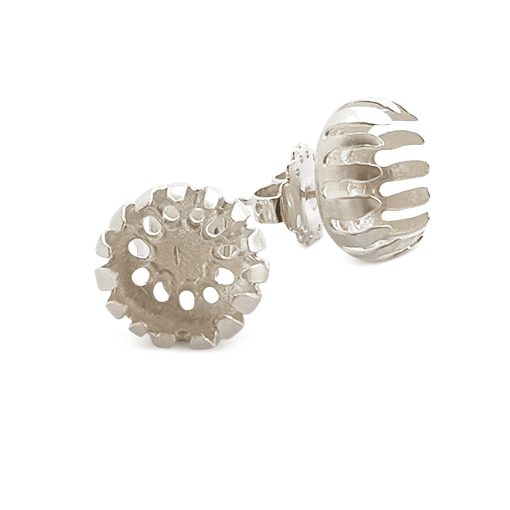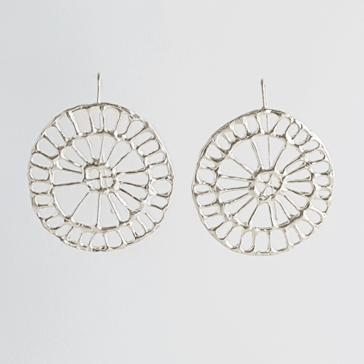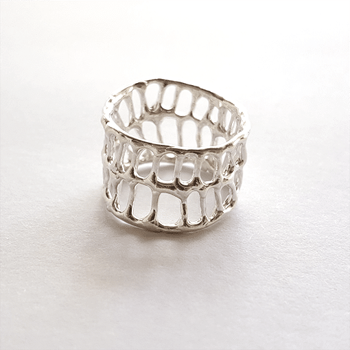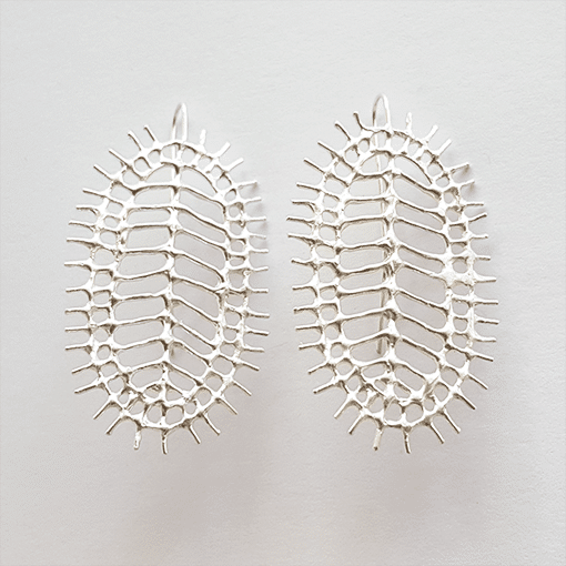 “Ancient artisans broke down the natural world around them into patterns and motifs. The jewellery and art objects they created come out of the ground as though they grow down there. Living in Athens, these become my replacement for the natural world I left behind in Australia. I take these simple pattern elements, borrowing from vase and amphora and rhyton, turning them into three dimensional objects cast from wax. Using these pattern puzzle pieces, I can build a nature of my own, drawing on the flora of my memories and my home, but built using the visual language of those artisans. With nature being one of the main inspirations for my work, I make every effort to be as responsible with my practice as I can be. My pieces are made with recycled silver, and, due to the nature of casting, any failed pieces can be refined and recycled infinitely.“