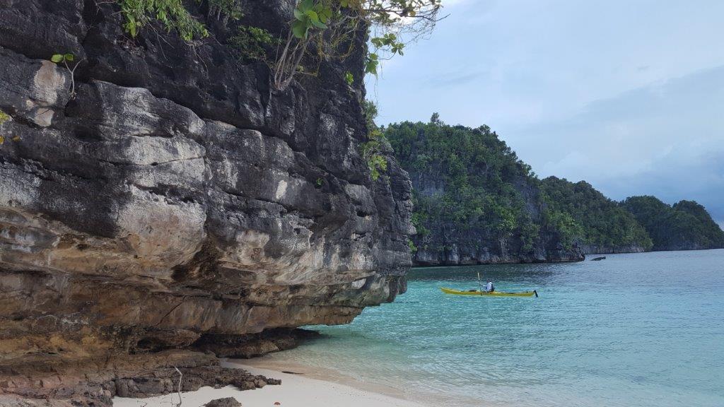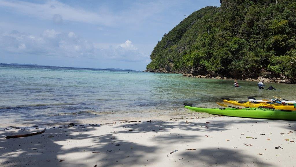 The marine life and landscapes we kayaked around for 10 days were mind boggling, crystal clear, blue water, calm, protected lagoons, massive limestone, weather-worn rocks, carnivorous plants, wild seas and currents, sea turtles, reef sharks, too many fish to name….One of the highlights was swimming through a dark and majestic limestone cave with just our head torch (think Jenolan caves without the kitsch coloured lighting)….I did hear later that salt water crocodiles had previously been spotted in the cave…that could have made for an interesting full stop to my mortal existance!